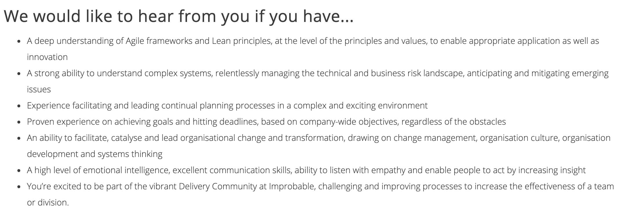 <li>You’re excited to be part of the vibrant Delivery Community at Improbable, challenging and improving
